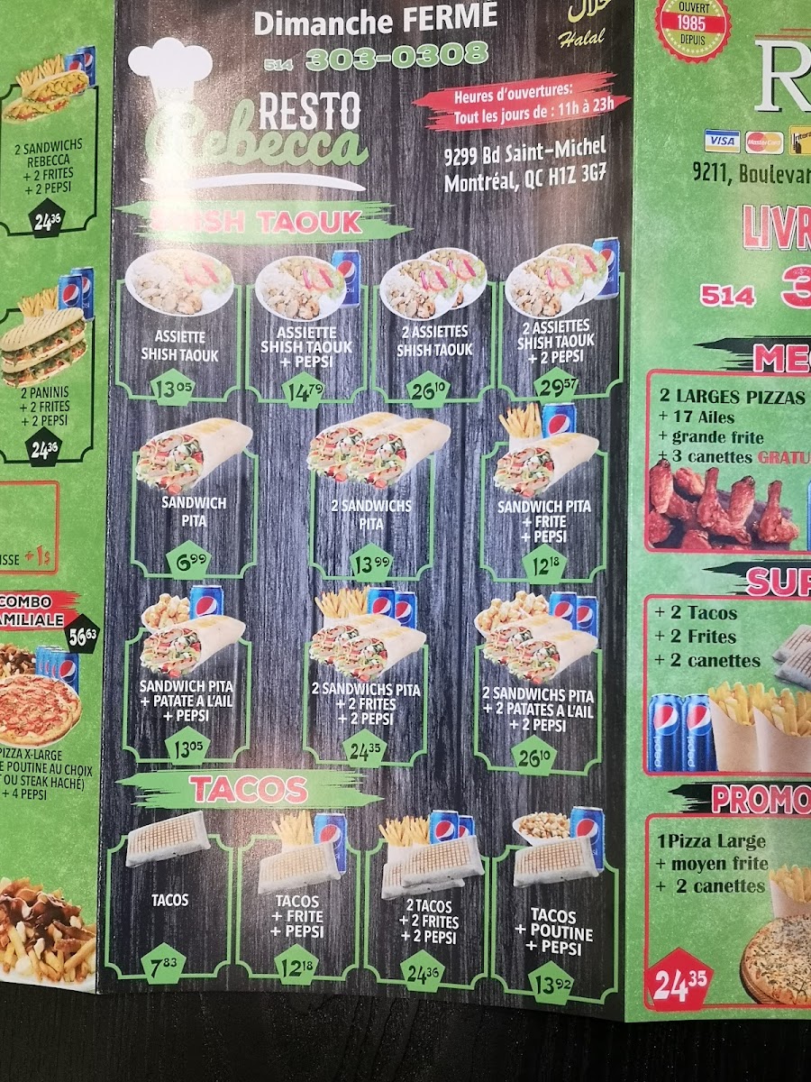 The menu at Rebecca Shish Taouk offers a variety of options centered around classic Middle Eastern dishes and popular casual meals. It includes several well-defined groups to suit different dining preferences and group sizes.